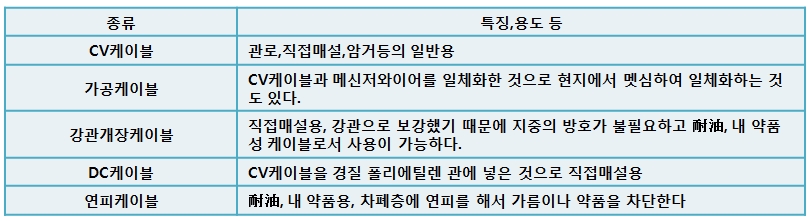 [표3] 특수 케이블과 용도