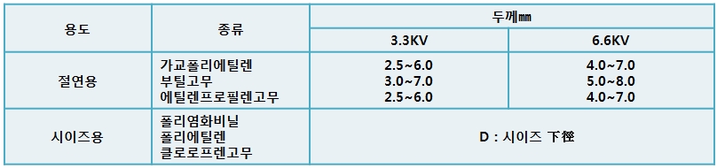 [표1] 실용되고 있는 고압케이블