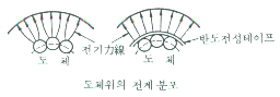 · 케이블 절연체에 가해지는 전계는 도체 위쪽이 크기 때문에 압출 반도전층이 사용되고 있으나 이것은 테이프식의 반도전층에 비해서 미끈한 표면이 되어 성능상 좋다.
