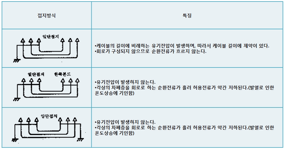 케이블 차폐층의 접지방식에는 크게 일단 접지방식과 양단접지방식이 있다.
