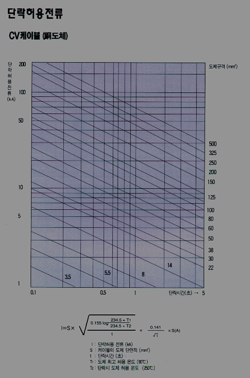 [그림] CV케이블 단락시 허용전류(銅도체)