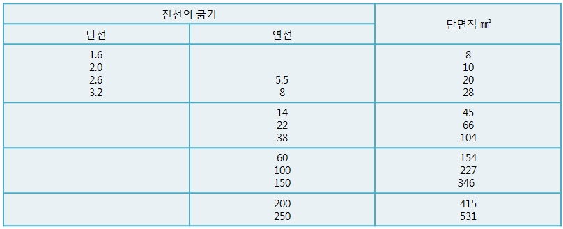 · 전선은 절연전선을 사용하고 전선은 지름 3.2㎜(알루미늄 4㎜)를 초과하는 경우에는 연선일 것