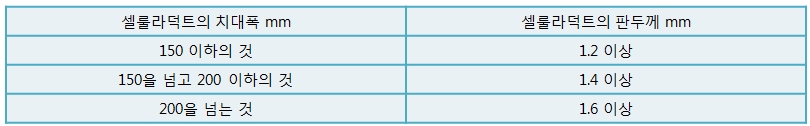 · 셀루라덕트 및 부속품의 재료는 강판 또는 이와 동등이상의 것으로 단구 및 내면은 전선의 손상이 없도록 매끈한 것일 것. 또한 부식을 방지하기 위한 도금 또는 도장을 한 것.