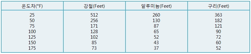 < 1인치 축소나 팽창을 위한 길이 >