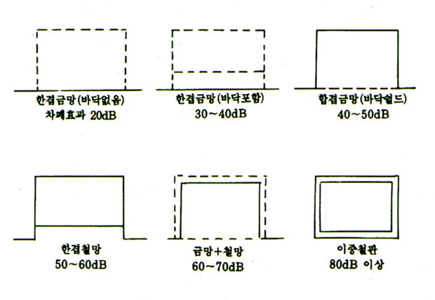 · 전자에너지가 일정공간내에 들어가지 않도록 하거나 또는 외부로 누설되지 않도록 차폐하는 것.