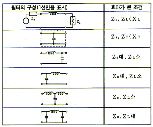 <표>회로의 특성에 따른 필터의 종류