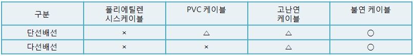 · 발포성 테이프 등을 별도의 접착제 없이 cable 에 감음으로써 화염에 노출되었을 때 팽창,발포 및 탄화로 인하여 단열층을 형성 열전달의 차단 및 화염의 확산을 방지하는 것으로 석면이 포함되지 않은 것.