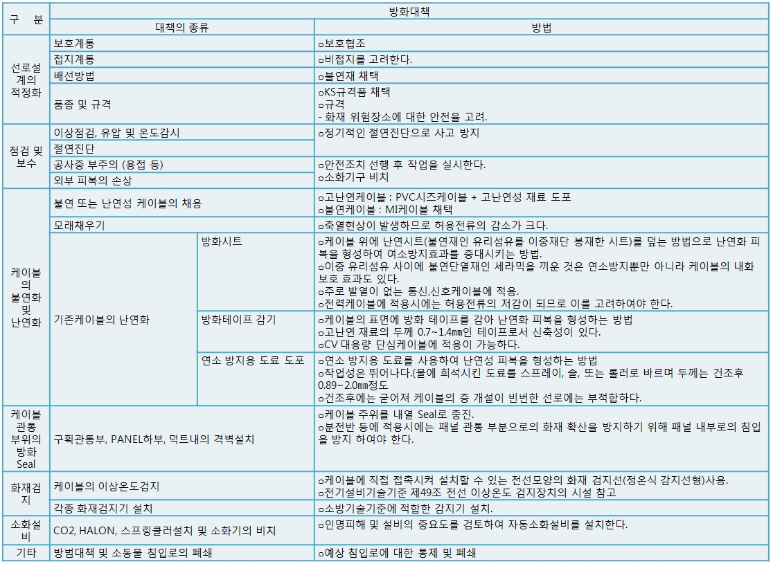 맨홀內, 밀폐덕트內, 수직덕트, 샤프트내 부설케이블은 케이블화재의 위험한 장소이다