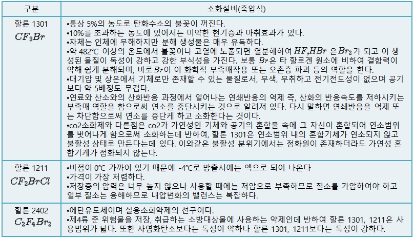 4. 할론 1301, 1211, 2402 소화약제의 비교
