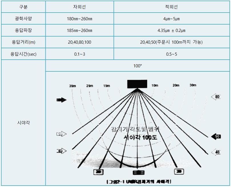 · 자외선 감지기는 185㎚~260㎚의 자외선 파장에서만 반응하도록 제작되며 고감도, 고출력, 고속반응,정확성(신뢰성)이 있다.