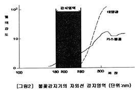 · 그림은 불꽃감지기에서 자외선 파장대의 감지영역(185㎚~260㎚)을 보여주는 것으로 불꽃이 내는 에너지(자외선 방사에너지)의 양을 측정하여 불꽃의 광량을 판별한 것이다