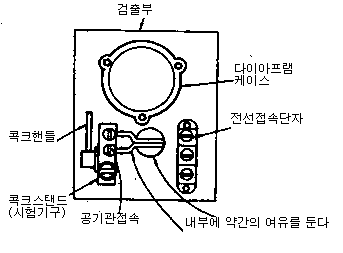③ 시험코크 또는 키를 접점수고치에 조정하고 테스트 펌르로 적량의 공기를 서서히 불어 넣음
