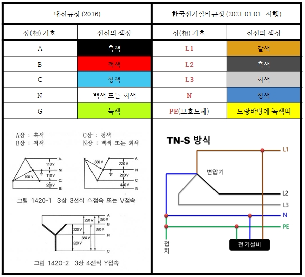 3) 제1 및 제2를 제외한 전선의 식별은 KS C IEC 60445(인간과 기계 간 인터페이스, 표시 식별의 기본 및 안전원칙-장비단자, 도체단자 및 도체의 식별)에 적합하여야 한다.