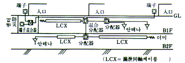 3) 누설동축케이블방식 + 공중선 방식