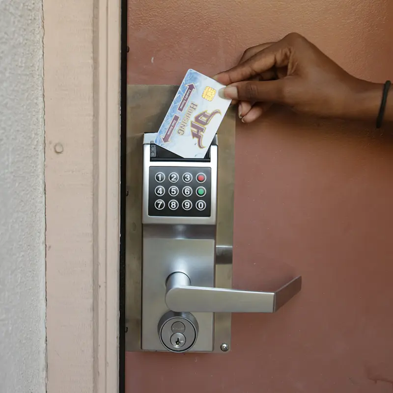CARD READER는 DOOR HANDLE쪽의 벽면에 설치하며, 마감시에 미려하도록 벽면매립형을 사용하여야 한다. 또한 사용자가 개폐여부를 알 수 있도록 INDICATION LAMP가 붙은 형을 사용하여야 한다.