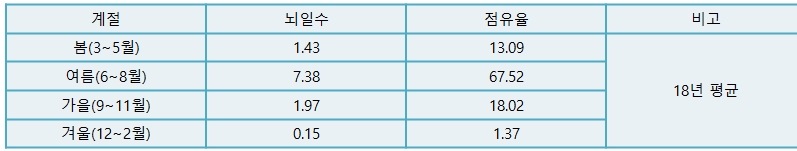 [표] 계절별 뇌일수