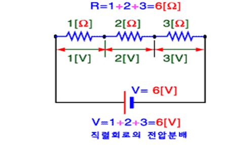 각 저항의 전압강하를 모두 합하면 전원 전압이 된다.