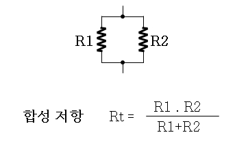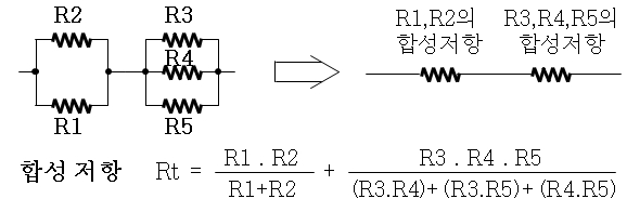 ※ 직.병렬회로로 연결된 합성저항은 병렬로 연결된 회로의 합성 저항 값을 구한 후 다시 직렬회로로서 합성 저항 값을 구한다.