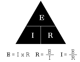 1826년 G.S.옴이 발견한 물리학의 기본법칙의 하나로 전압, 전류, 저항 사이의 관계를 나타낸 것이다. 즉 전위차를 E, 전류의 세기를 I, 전기저항을R이라 하면, E= I R의 관계가 성립한다. 균일한 크기의 물질에서 R는 길이ℓ에 비례하고 단면적 S에 반비례하며 R= ρ ℓ /S이다. 여기서 ρ는 물질 고유의 상수이며 비저항이라 하며, 옴의 법칙을 이용하여 키르히호프의 법칙이나 콘덴서와 인덕턴스를 포함한 교류회로의 기초 방정식을 유도할 수 있다. 접촉저항 ·광석검파기 ·금속정류기 2극진공관·트랜지스터 등의 회로요소는 이 법칙을 따르지 않는다.