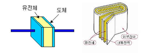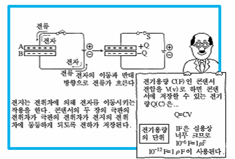 3) 단위 : 패러드(Farad)를 사용하고 있으며 1패러드는 콘덴서에 1V의 전압을 공급하여 1 쿨울롱의 전하가 충전되는 콘덴서의 용량을 1패러드(Farad :F)라 정했다. 실용단위로서 1F는 너무 크기 때문에 ㎌, ㎊를 사용하고 있다.