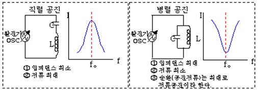 직렬공진회로와 병렬공진회로의 특징은 그림과 같다.