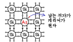 ① N형 반도체 : 5가 원자를 갖는 비소(As), 인(P), 안티몬(Sb)을 첨가하며 이를 도너(donor)라고 한다.