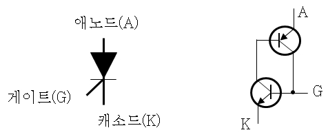② 심볼은 아래와 같이 애노드(A), 캐소드(K), 게이트(G)로 구분한다.