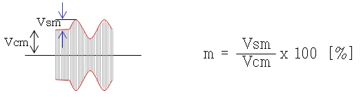 진폭 변조회로에서 변조 후의 파형이 그림(Fig03)과 같이 되었을 때, 그 변조의 정도를 변조도라고 하며 [m]을 약어로 사용한다. 변조도는 보통 m<1 이 되게 하고 있으며 m>1이 되면 과변조라고 하며 일시적으로 출력이 0이 된다.