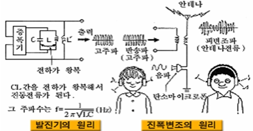 방송국에서 음악이나 음성 또는 영상을 마이크로폰과 카메라로 음성(영상) 전류로 바꾸어 이 전류를 고주파 전류에 실어서 전파로서 송신 안테나에서 보낸다. 고주파전류에 음성(영상)전류를 실어주는 것을 변조(Modulation)라 하며, 이 고주파전류를 반송파(Carrier)라 하고 음성(영상)전류를 변조신호라 한다.