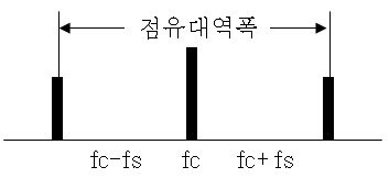 이때 fs[㎐]의 신호파를 fc[㎐]의 반송파로 진폭변조했을 때 스팩트럼 선도는 그림(Fig02)과 같이 되어 있는데, 반송파 신호0 외에 fc+fs의 주파수와 fc-fs의 주파수가 생기게 되는데 이 주파수를(Side band)라 부르며 fc+fs 주파수를 상측파대라고 하며 fc-fs를 하측파대라고 한다.