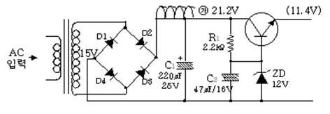 (DC전압) C1은 DC전압 중에 AC성분(Ripple)을 제거해주고 DC성분의 전류를 충전시켜 전류 충실도를 높여준다. 콘덴서의 용량이 클수록 Ripple(Hum)성분이 없어져 S/N비가 좋아진다.