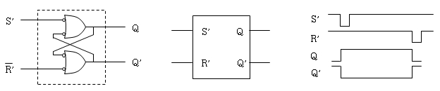 위 좌측의 그림과 같이 인버터를 제거하면 “L”입력단자를 갖는 플립플롭이 되며, 이와 같은 것을 RS 플립 플롭이라고 한다. 일반적으로 많이 사용된다.