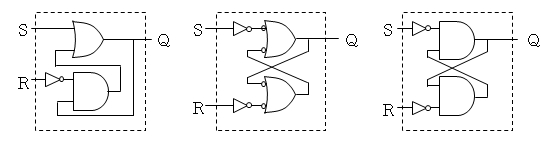 출력에는 기호 Q 를 사용하고, 이 출력 Q를 “H”로 하기 위한 입력단자를 세트(Set)입력단자, 출력 Q를 본래의 “L”로 되돌리기 위한 입력단자를 리세트(Reset)입력단자 라고 하며, 각각 기호를 S, R로 표시한다. 플립플롭에서는 Set입력과 Reset 입력을 동시에 인가하여 사용할 수가 없기 때문에 이때의 출력 Q에는 X를 붙인다.