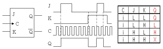 JK플립 플롭은 J와 K의 2개의 입력단자를 갖고, 클럭이 들어올 때 J나 K의 값에 따라서 출력이 변한다.