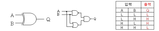 이 게이트 회로는 두개의 입력이 서로 다른 경우에는 출력이 High 이고 입력이 서로 같은 경우에는 출력이 Low 가 되는 회로이다. 이 게이트 회로는 일명 반 일치 회로 또는 배타적 논리회로라고도 한다.