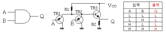 AND 게이트는 2 이상의 입력단자와 단일출력으로 구성되었다. 즉 1개의 게이트는 입력단자가 2, 3, 4, 8 및 2개 이상이라도 출력단자는 하나인 것이다. AND 게이트의 기본연산은 모든 입력이 High레벨 일 때만 출력이 High레벨이고 어떤 입력 한 개라도 Low이면 출력은 Low이다.