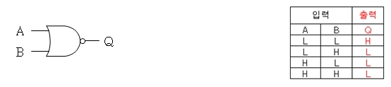 A 그리고 B가 모두 Low이면 출력은 High이다.