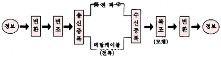 변조 : 디지털 신호를 전기신호로 변환