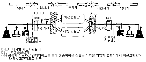 이와같이 하게 되면 중계계의 네트워크가 회선교환과 패킷교환으로 나누어져 있더라도 사용자측에서는 같은 이용자 망 인터페이스를 사용하게 되므로 하나의 네트워크처럼 보인다. 다시말하면 가입자계는 회선교환에도 패킷교환에도 공용이 가능하다. 이용자는 동일 댁내 버스 배선상의 소켓에 각종 단말을 접속하여 패킷교환이든 회선교환이든 동일 번호를 사용하여 통신할 수가 있는 것이다.