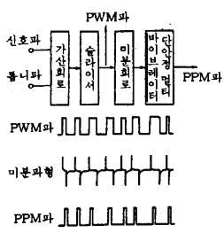 신호파의 진폭에 따라 펄스의 위치를 변화시키는 방식으로 펄스 위상변조 또는 PPM회로라고 한다.
