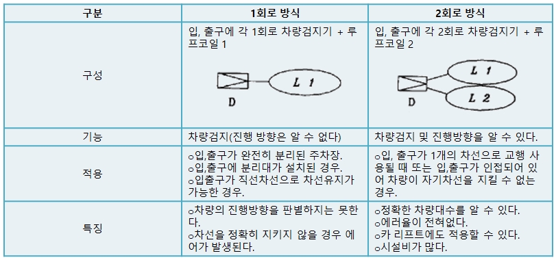· 차단기 직후의 차량검지기는 주차장 내의 차량(방향전환 및 후진 등)이 검출되지 않도록 할 것.