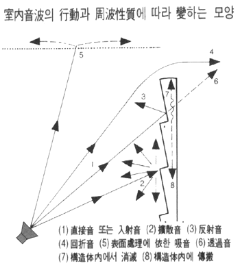 (C : 음속, F : 주파수)과 반사체 또는 확산체의 효과에 따라 달라진다.