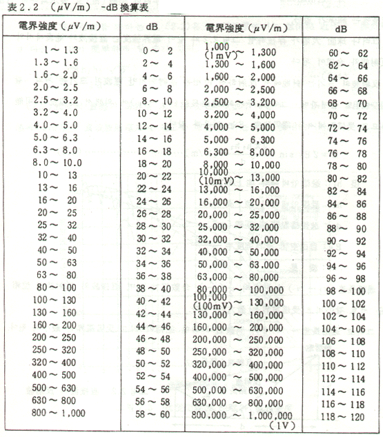 전파의 세기는 표준 dipole 안테나에 유지하는 1m당으로 환산하여 표시한다. 따라서 세기의 단위는 (V/m)인데 이것을 전계강도라고 한다. 수치를 간단히 하기 위해 dB를 단위로 표시한 것이 많으나 이것은 1㎶/m를 1dB로 하고 있다.