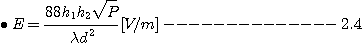 그런데 전계강도를 구하는 식 2.2은 TV전파대에서는 송신점 근방을 제외하고 다음과 같이 간단하게 할 수 있다.