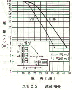 · 빌딩같은 차폐물의 그늘에서 수신하는 경우의 물체에 의한 차폐손실의 크기를 보면 그림 2.5와 같다.