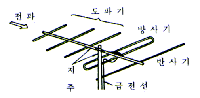 · 수신안테나로서 가장 많이 사용되고 있는 형식으로 1/2파장의 주 방사소자와 그것보다 몇% 긴 반사소자와 몇% 짧은 도파소자를 직선상으로 평 배열시킨 안테나로 간단한 구조로 높은 성능을 얻을 수 있다.