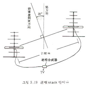 Stack 안테나에서 수신채널이 변화하면 null point가 변하기 때문에 특정 채널에서 ghost파를 제거하는데 충분한 효과가 있으나 다른 채널에서는 효과가 소멸된다. 이런 점을 개선한 것이 역상 stack 안테나이다