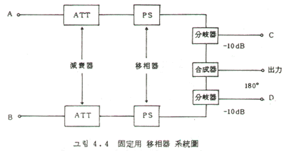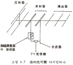 주로 후방과 측방의 ghost에 대하여 고려된 것으로 그 구조는 그림 4.7과 같다. 진폭조정기와 이상기의 조정으로 지향성의 절단 각도를 조정하는 것으로 전후비도 좁은 각도에서 40dB 이상된다.