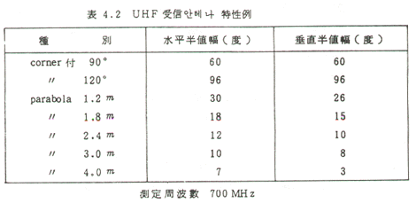 [표]VHF 및 UHF 수신안테나의 특성"예"
