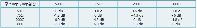 레벨을 나타낼 경우 정식으로는 임피던스가 몇 Ω 경우의 레벨인가 하는 것을 명시하지 않으면 안된다.